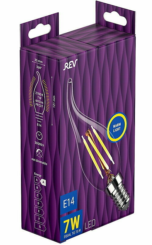Лампа светодиодная филаментная REV Е14 7 Вт 695 Лм 180-230 В свеча на ветру прозрачная интересное: