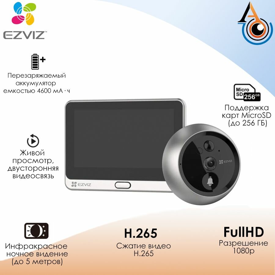 Умный Видеоглазок Ezviz Wi-Fi CS-DP2C, 1920x1080, 4,3 '',