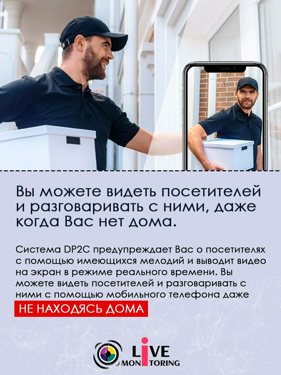 | Дополнительная информация | Датчик движения, Запись видео, Запись фото, Инфракрасная подсветка, Отправка SMS-сообщений, Переадресация вызовов на телефон, Приложение для iOS и Android, Пользовательские мелодии звонка, Регулировка яркости, Режим "Не беспокоить" |