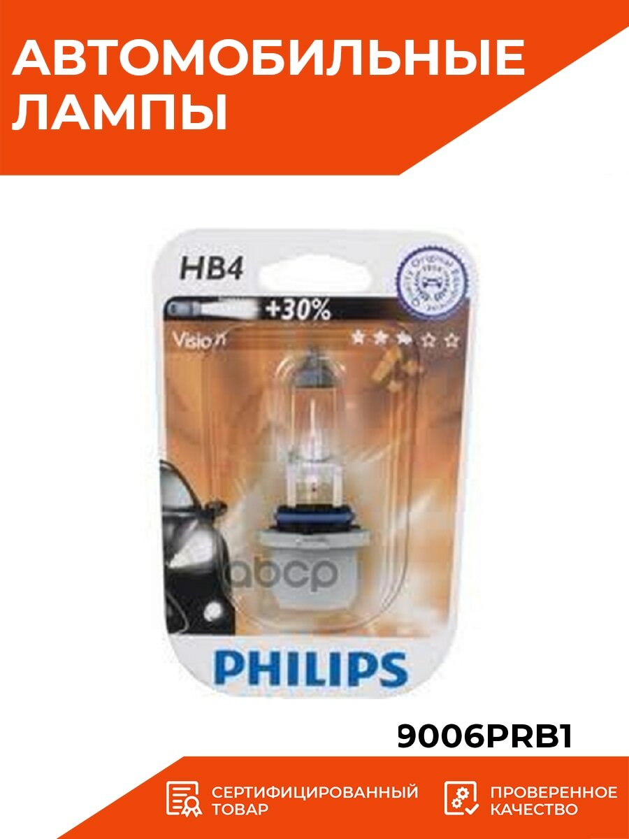 Лампа Галогеновая Головного Света Hb4 P22d 3200k Vision 12v 55w Блистер 1 Шт Philips арт. 9006PRB1