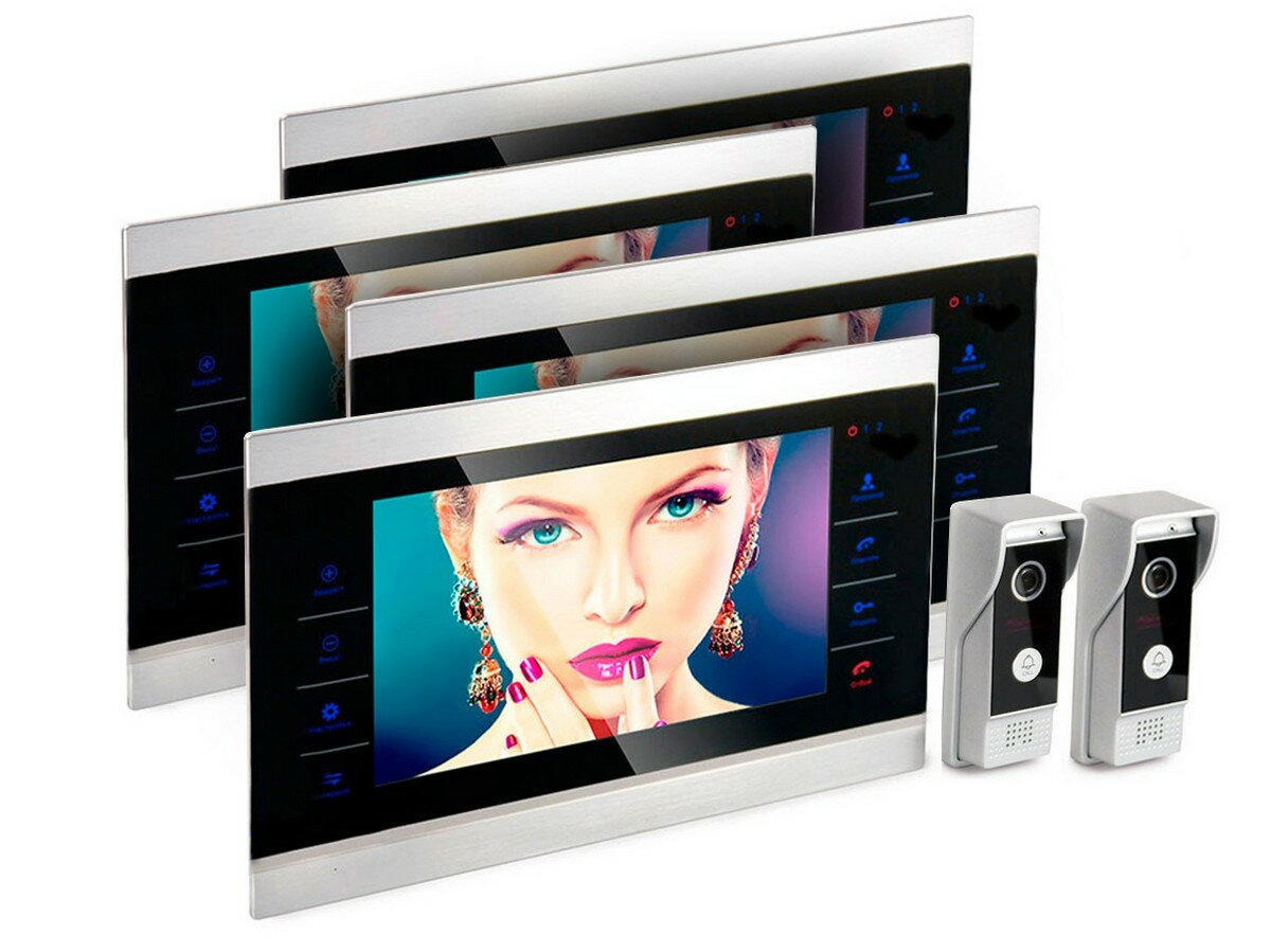 Купить Набор: четыре видеомонитора «HDcom S-104» и 2 вызывные антивандальные панели. Запись видео на SD карту по датчику