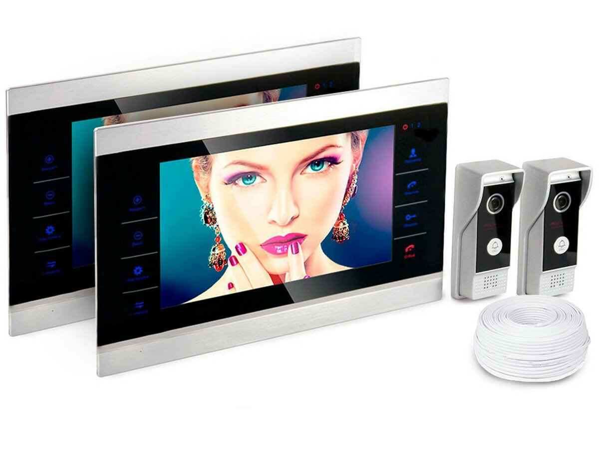 Купить Набор: 2 видеомонитора HDcom S-104 и 2 вызывные антивандальные панели. Запись видео на SD карту по движению