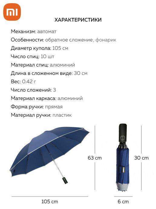 | Дополнительная информация | по краям зонта вшита светоотражающая лента, фонарик в ручке |