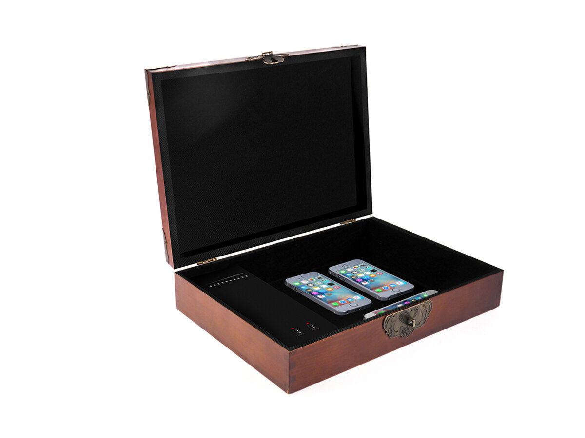 Купить Интеллектуальный акустический сейф - SPY-box Шкатулка-3 GSM-П» (до 12 смартфонов, пульт ДУ, ультразвуковое подавление, блокировка связи)