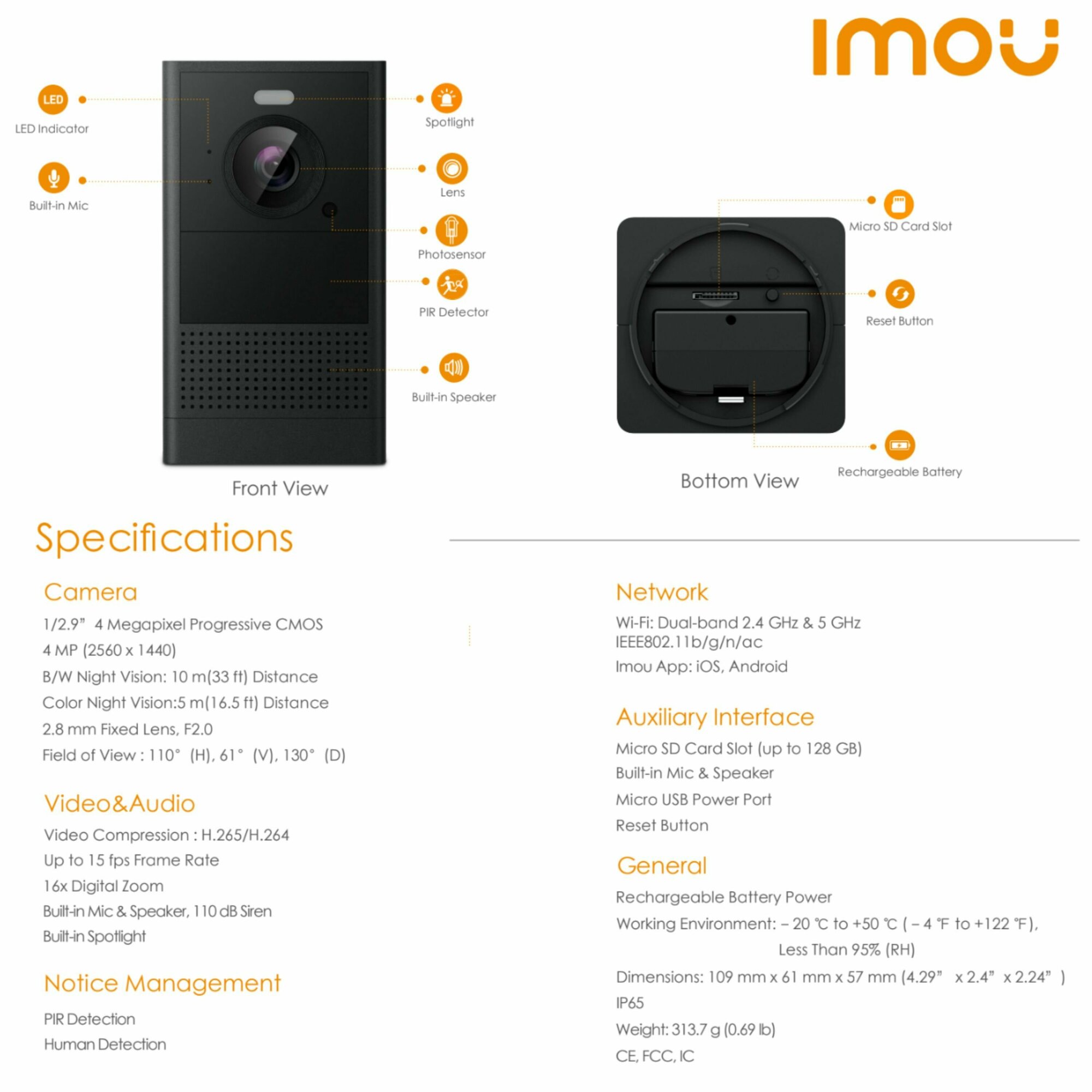 | Функции и особенности | ИК-фильтр / встроенный динамик / встроенный микрофон / слот для карт памяти |