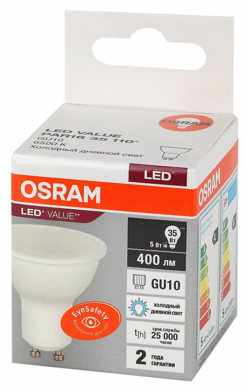5SW/865 ( замена 35W) 110 градусов GU10 LED Value - LED лампа OSRAM интересное: