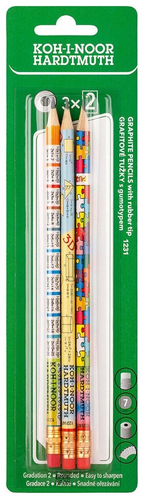 Koh-I-Noor Набор карандашей ч/г 3шт Koh-i-Noor MIX 1231 HB, с ластиком, блистер