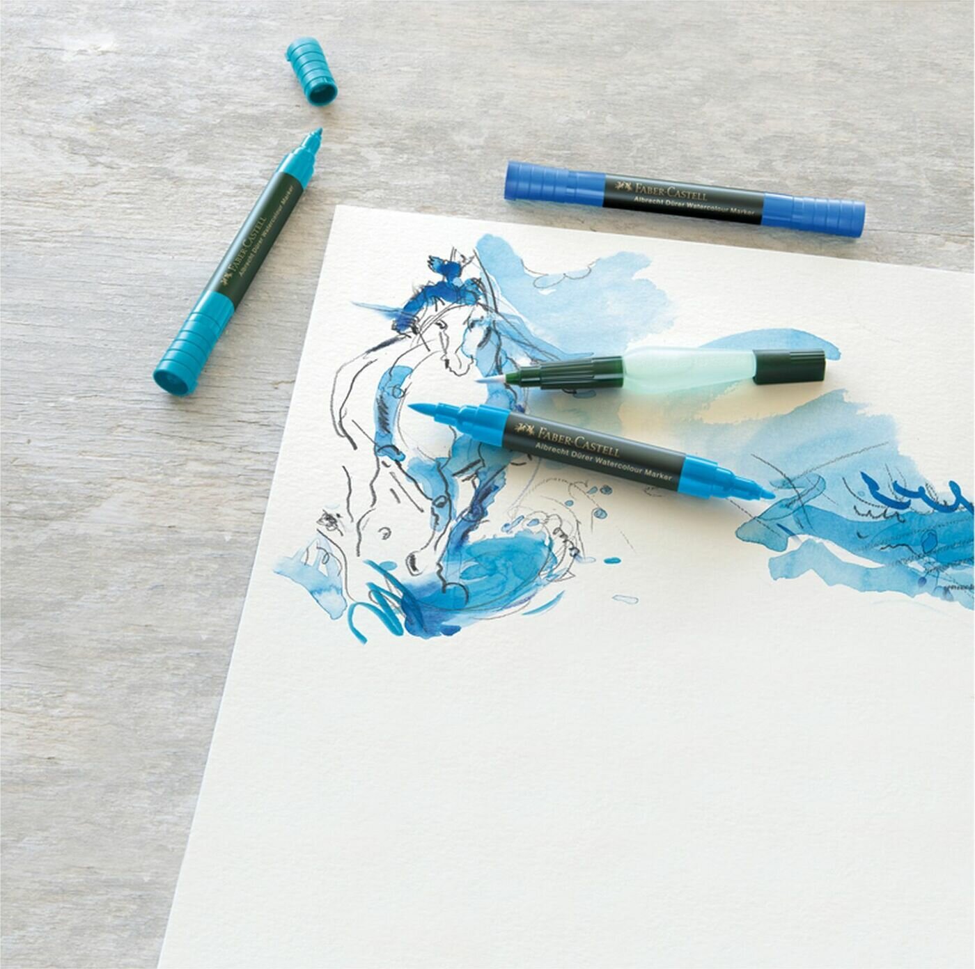 Набор акварельных пигментированных маркеров Faber-Castell "Albrecht Dürer" 5 цветов, двухсторонние, кистевидный/пулевидный