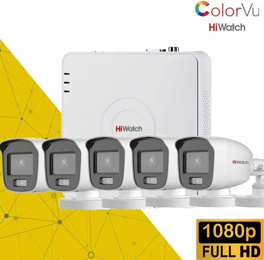 Купить Комплект видеонаблюдения Hiwatch с технологией ColorVu на 5 уличных камер Full HD/1080P/Цветная ночная съемка
