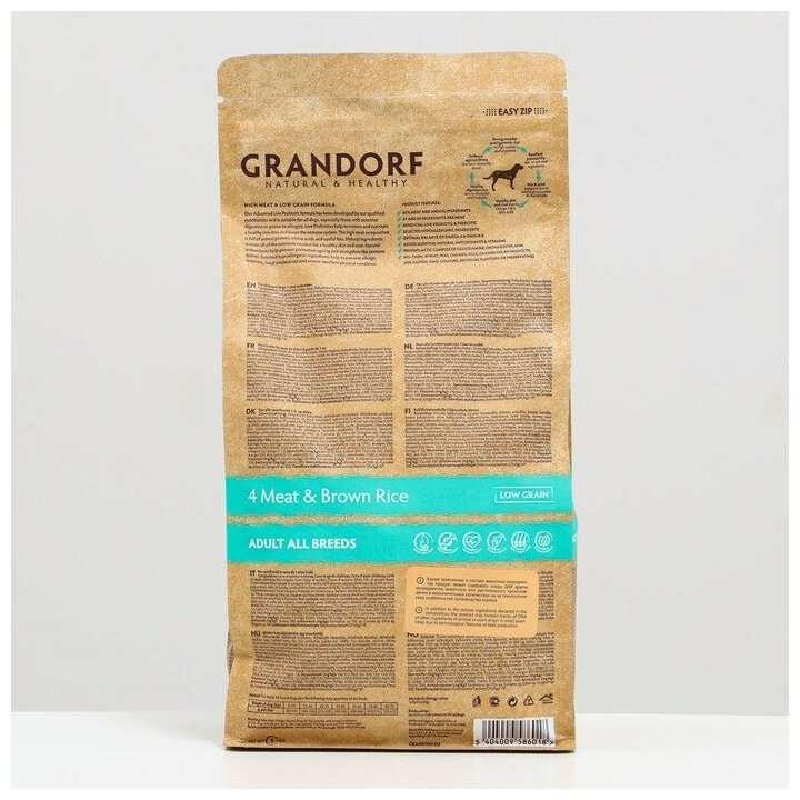 Ниже Вы можете прочитать отзывы на GRANDORF четыре вида мяса С бурым рисом для взрослых собак всех пород 1 КГ, ознакомится с подробными характеристиками, посмотреть интересные обзоры и фотографии на GRANDORF четыре вида мяса С бурым рисом для взрослых собак всех пород 1 КГ.