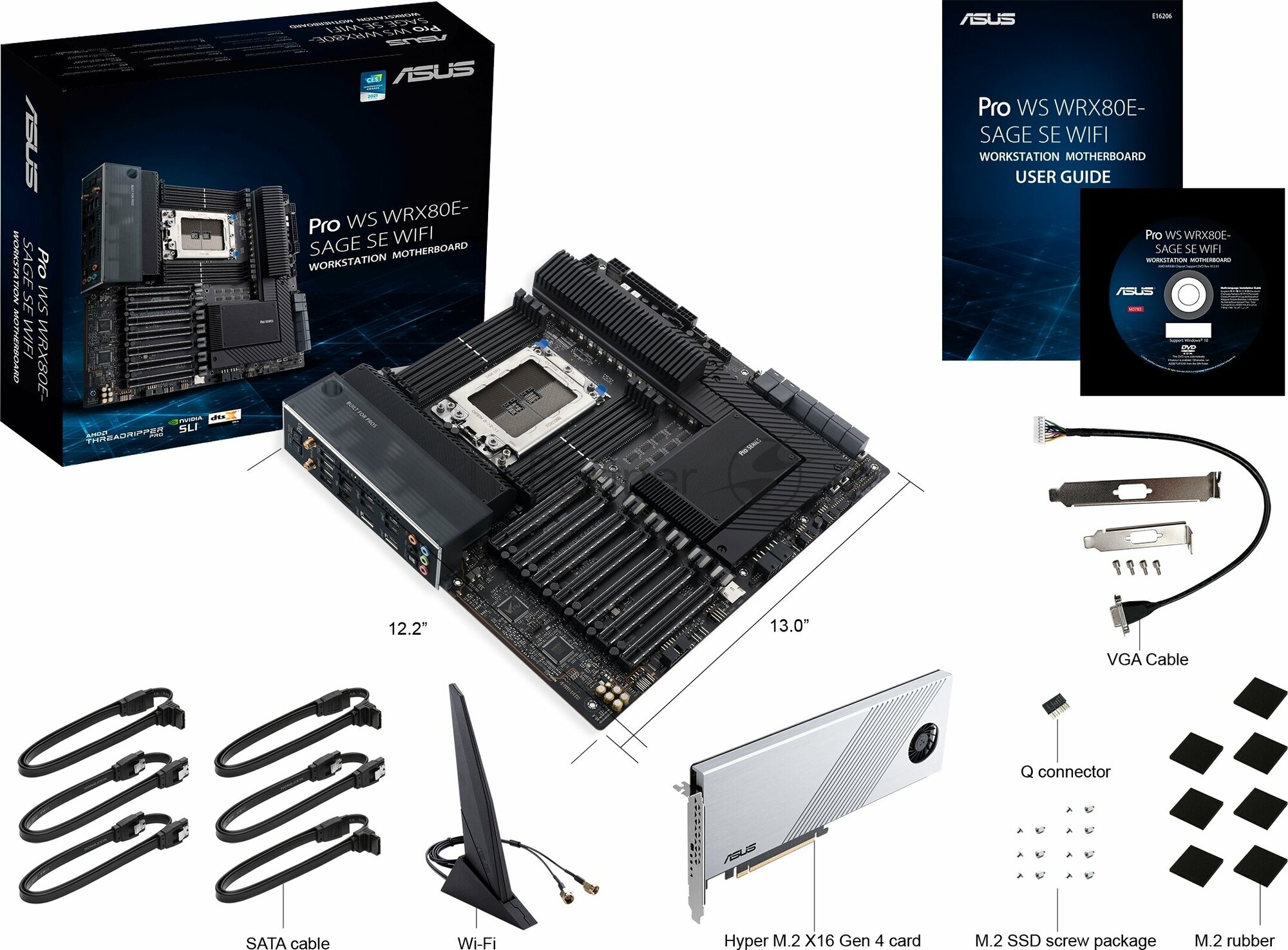 Материнская плата PRO WS WRX80E-SAGE SE WIFI /AMD SWRX8,WRX80,PCIE 4.0,WS MB, RTL