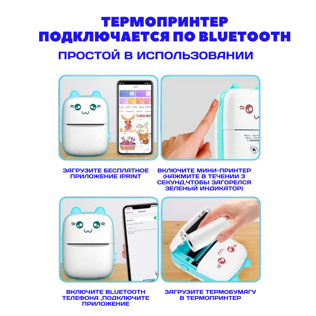 Портативный мини принтер для наклеек, голубой интересное: