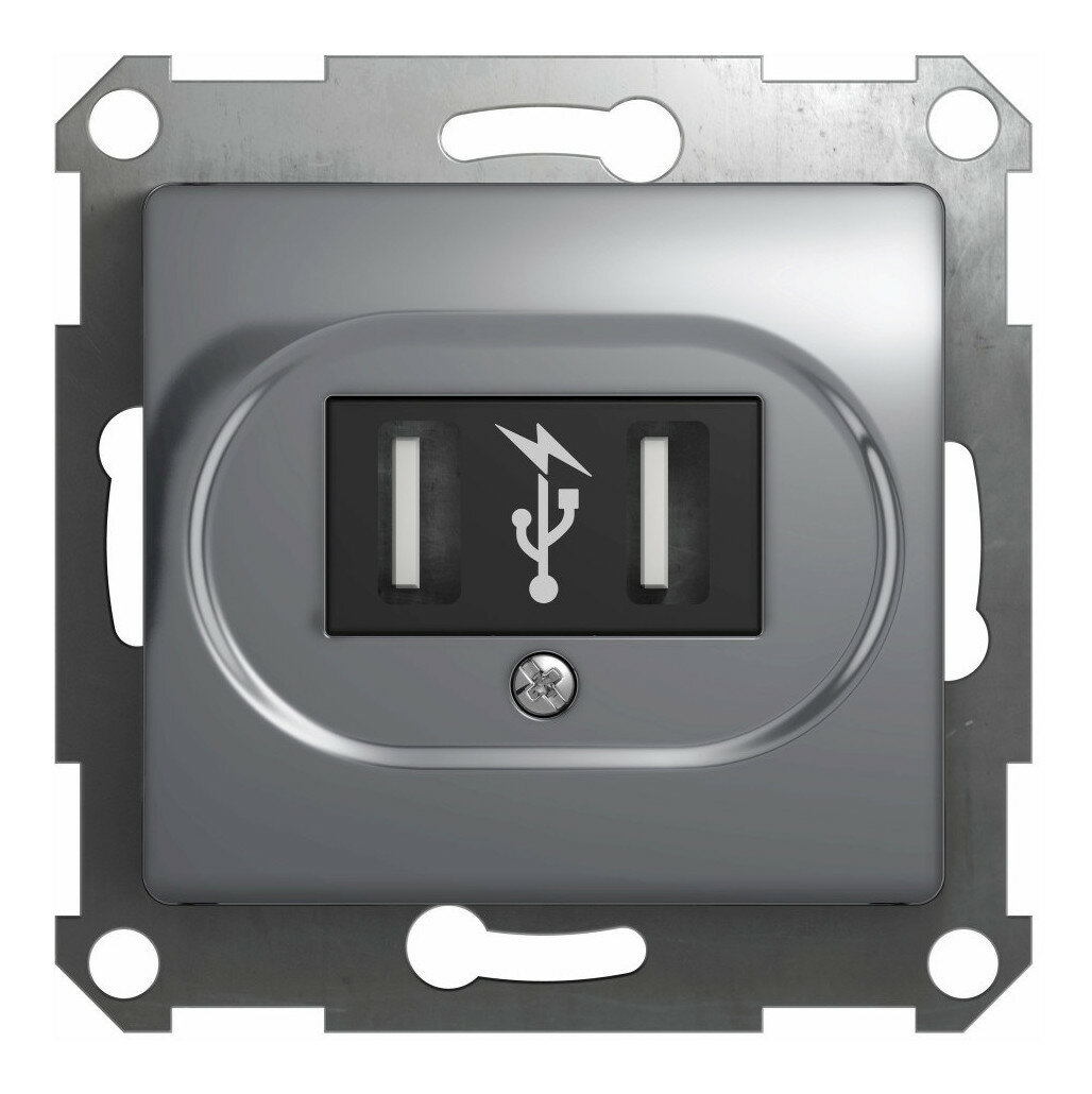 Купить Розетка 2гн USB A+С с/у алюминий механизм Glossa Schneider Electric