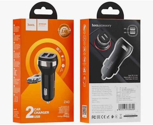 Автомобильное зарядное устройство HOCO Z40 2USB 2.4A интересное: