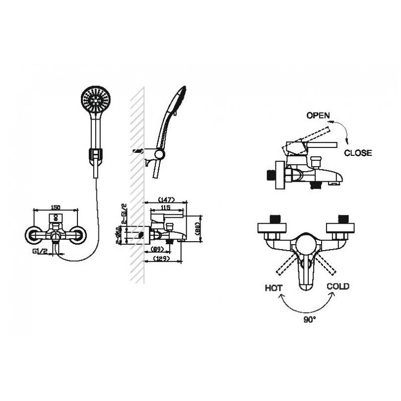 BRAVAT SLIM F6332366CP-01 смеситель для ванны, с душевым набором, хром