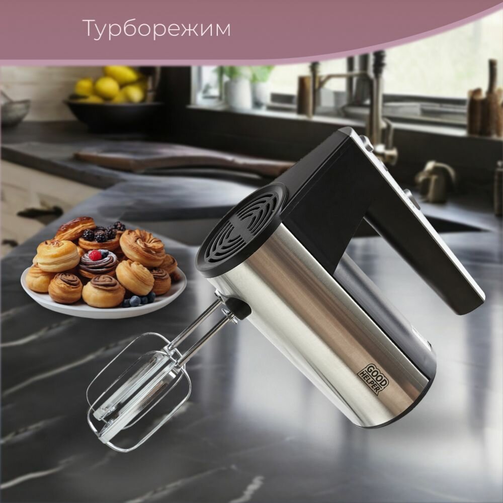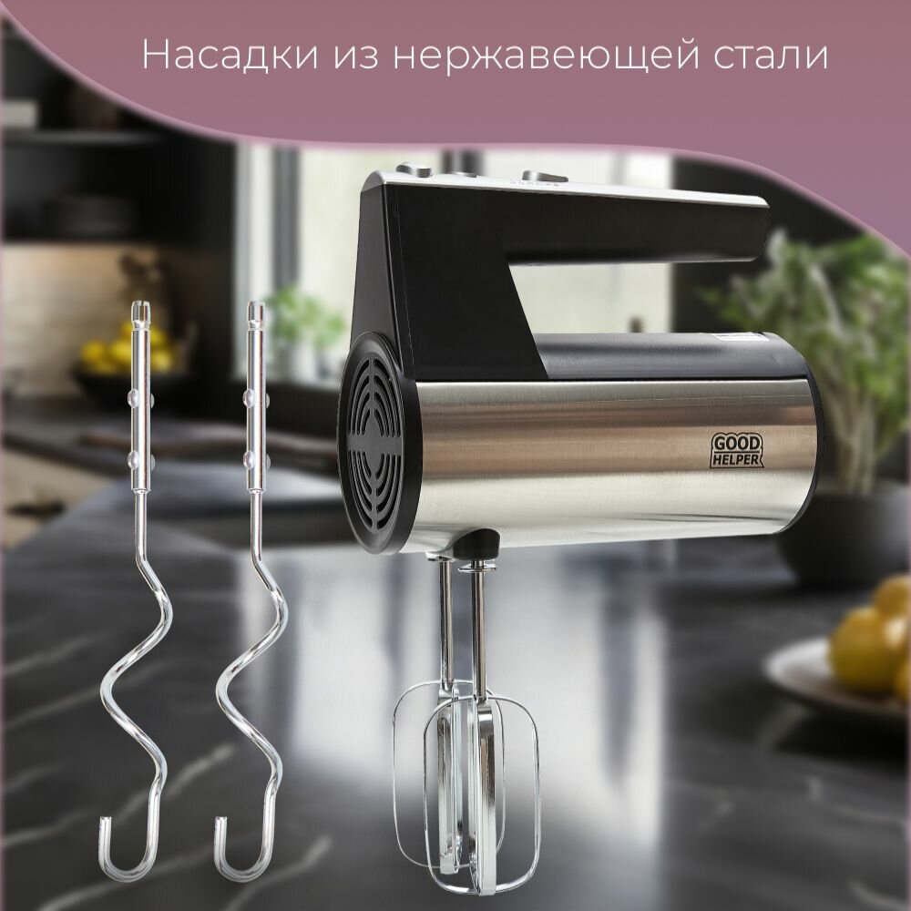 Миксер GOODHELPER HM-450, 350 Вт., (стальной/черный)