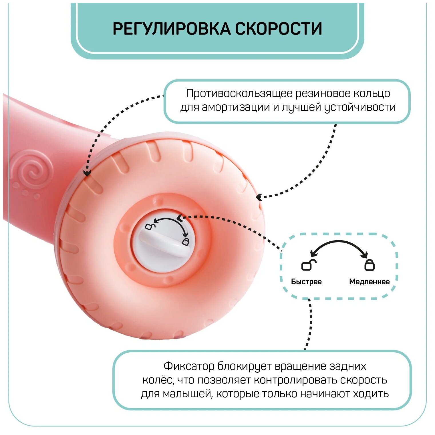 | Минусы: | Было бы хорошо если колёса поворачивались, как в колясках. Потому как ребёнок ходит только по прямой, поворачивать тяжело. |