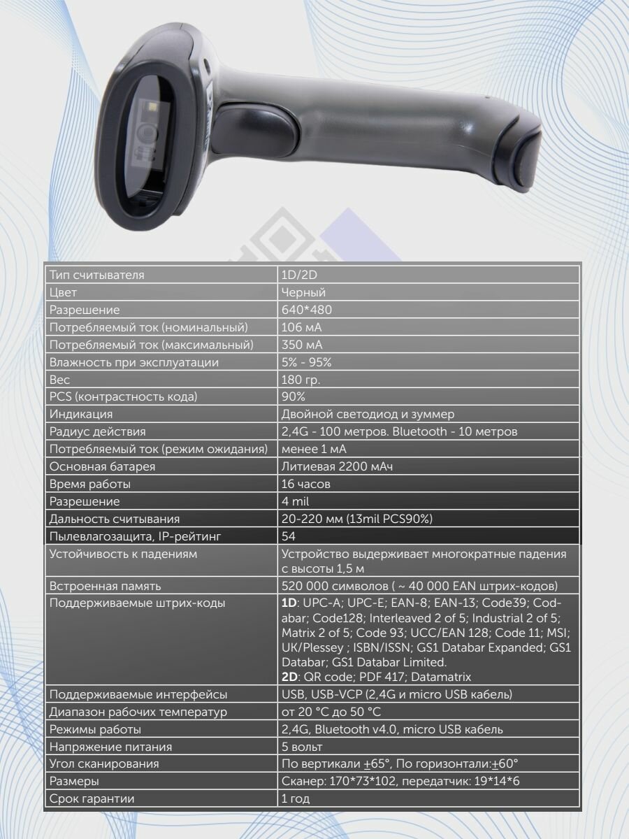 | Вид декодируемых кодов | 1D / 2D |