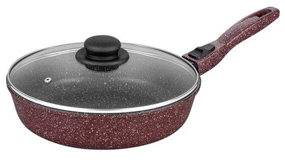 Сковорода глубокая 26 см Elan Gallery Гармония Вкуса Рубиновый дуэт с крышкой D26, со съёмной ручкой .