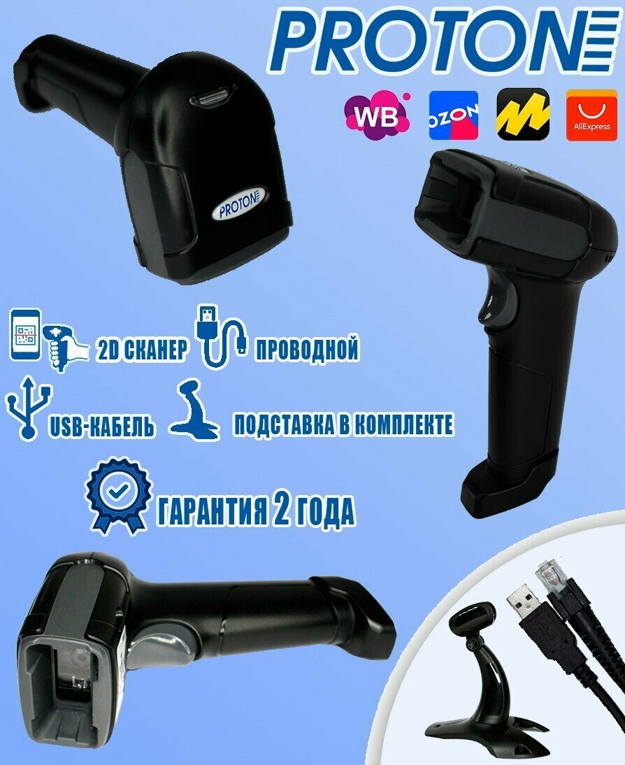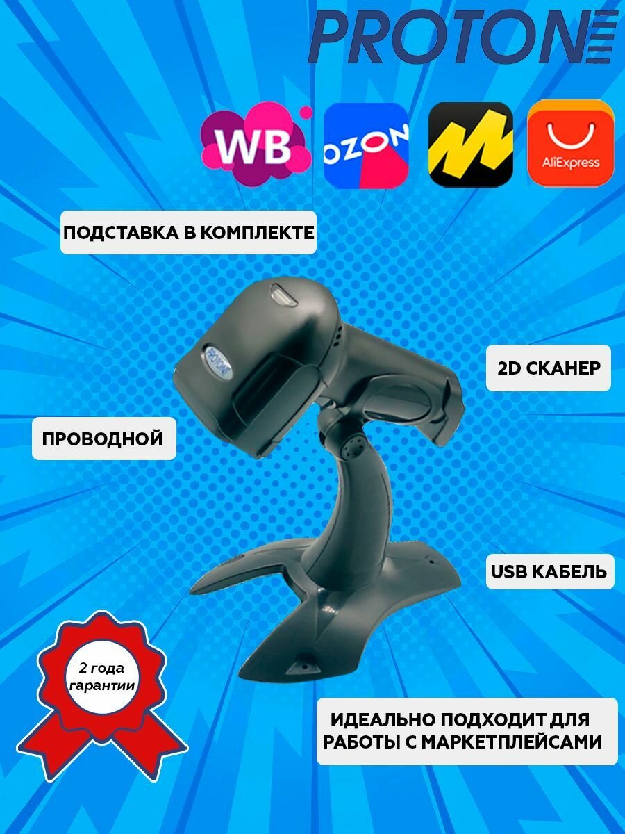 Сканер штрих-кода Proton ICS-1290, 2D, USB, черный, проводной, подставка интересное: