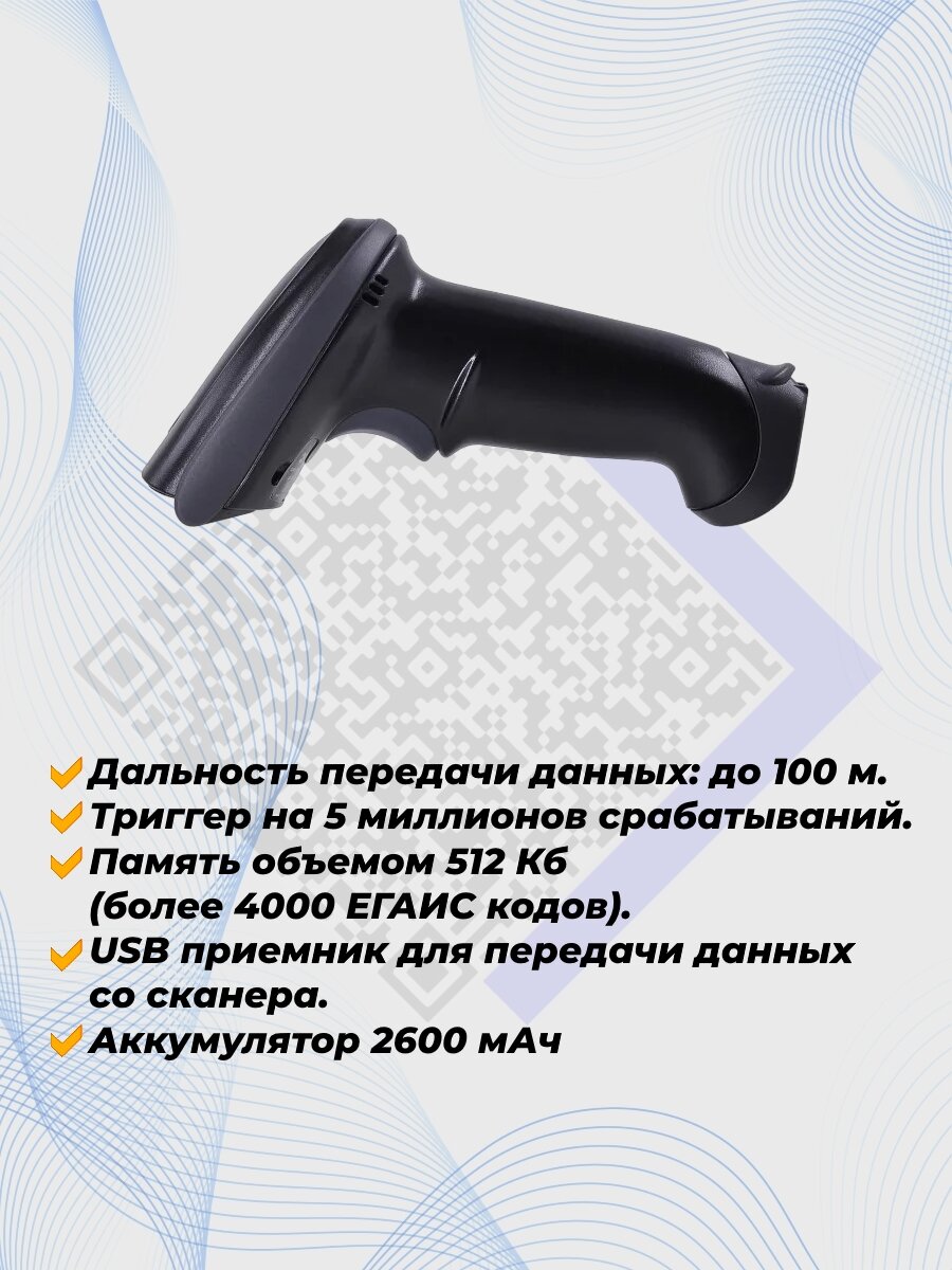 Беспроводной сканер штрих-кода МойPOS MSC-9516W2D, арт. 4534, 2D, черный, без подставки Cradle