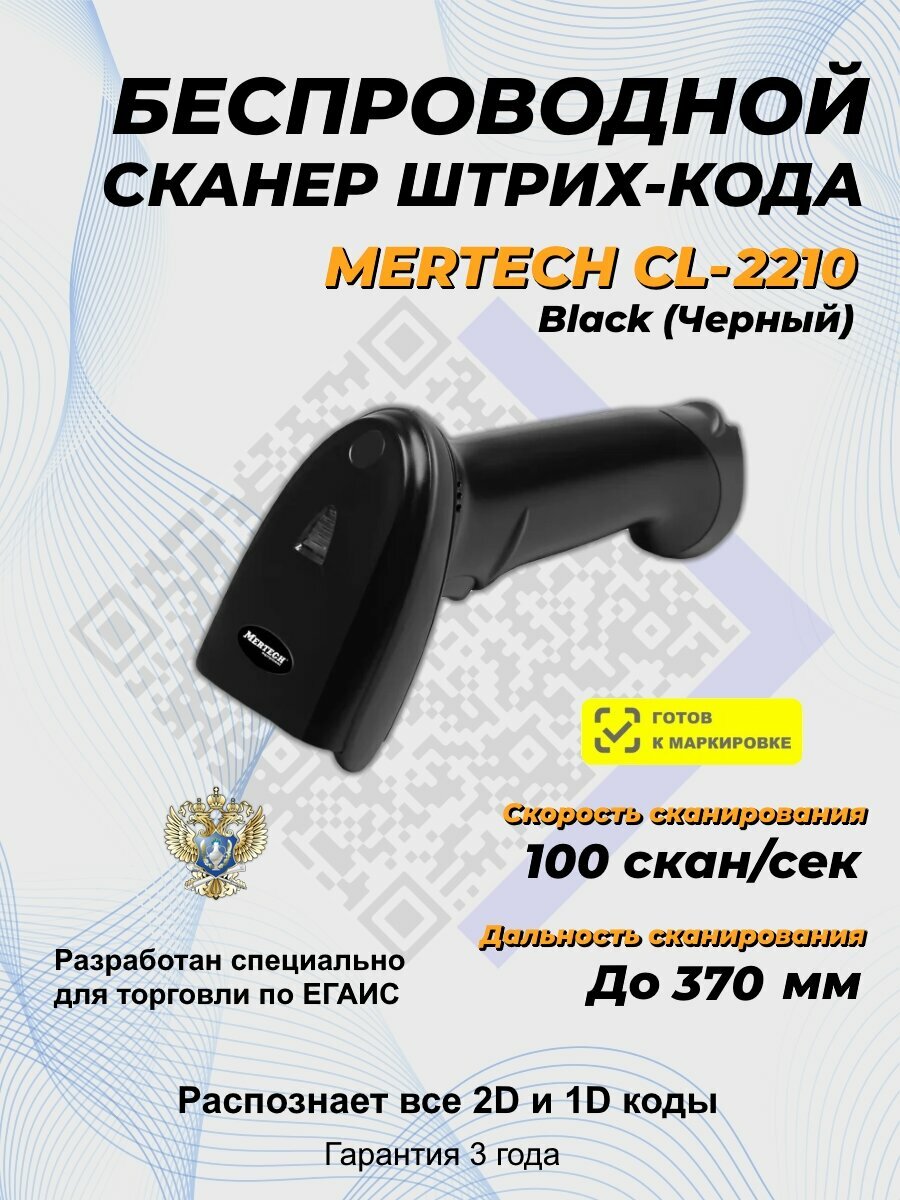 Сканер штрих-кода Mertech беспроводной CL-2210 BLE Dongle P2D USB, черный