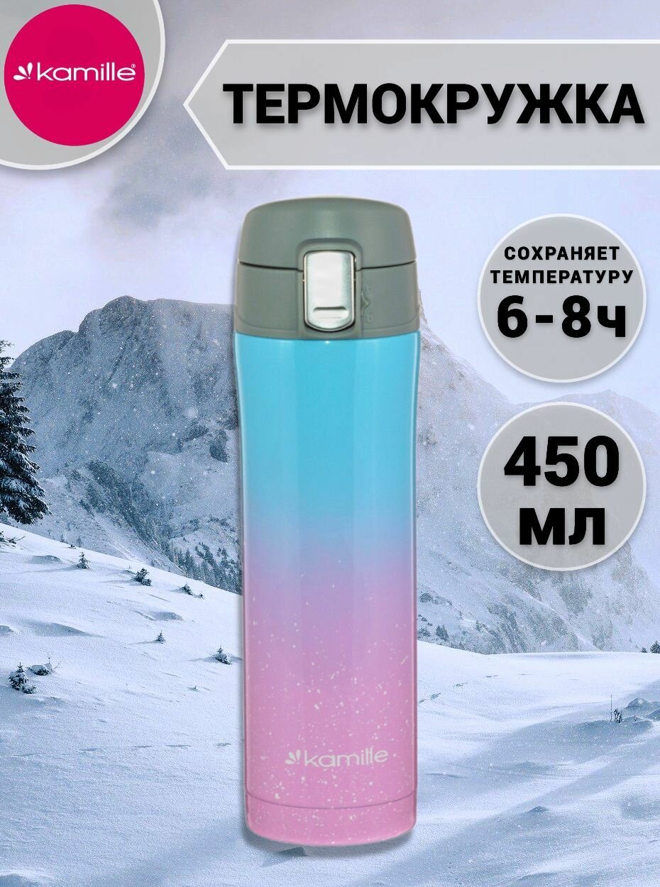 Термокружка 450 мл. из нержавеющей стали Kamille KM-2095 (2095 / синий)