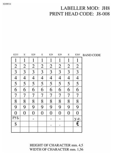 Этикет-пистолет 1-строчный (цифры, знаки), 8 символов, 21 х 12 мм, прямоугольный