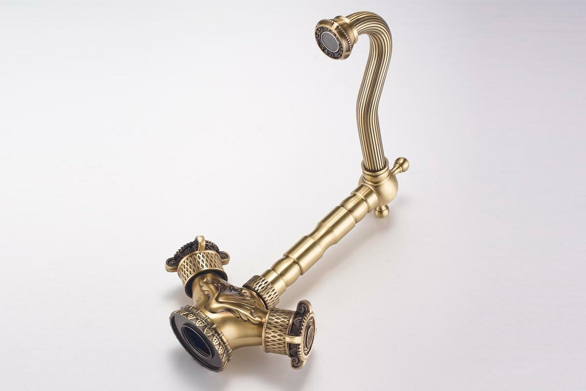 Смеситель для кухни ZorG A 3005K-BR, латунь бронзовый, ретро, с орнаментом, аэратор от брызг, поворотный