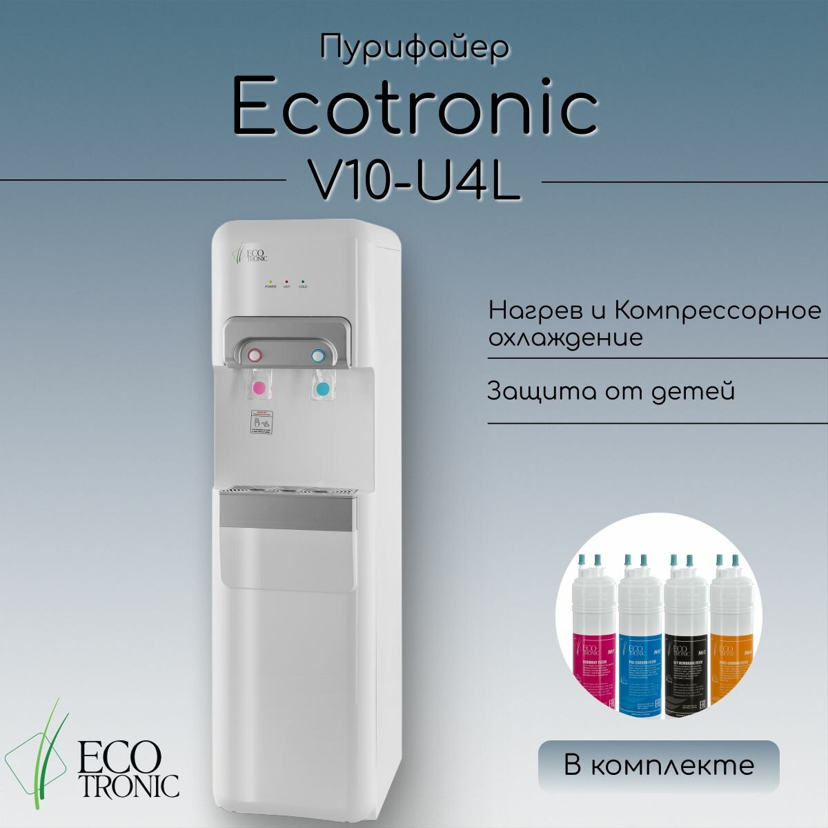 Пурифайер для воды ECOTRONIC V10-U4L напольный, нагрев/охлаждение компрессорное, 2 крана, белый 7258