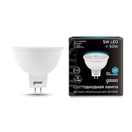 Лампа Gauss MR16 12V 5W 530lm 4100K GU5.3 LED
