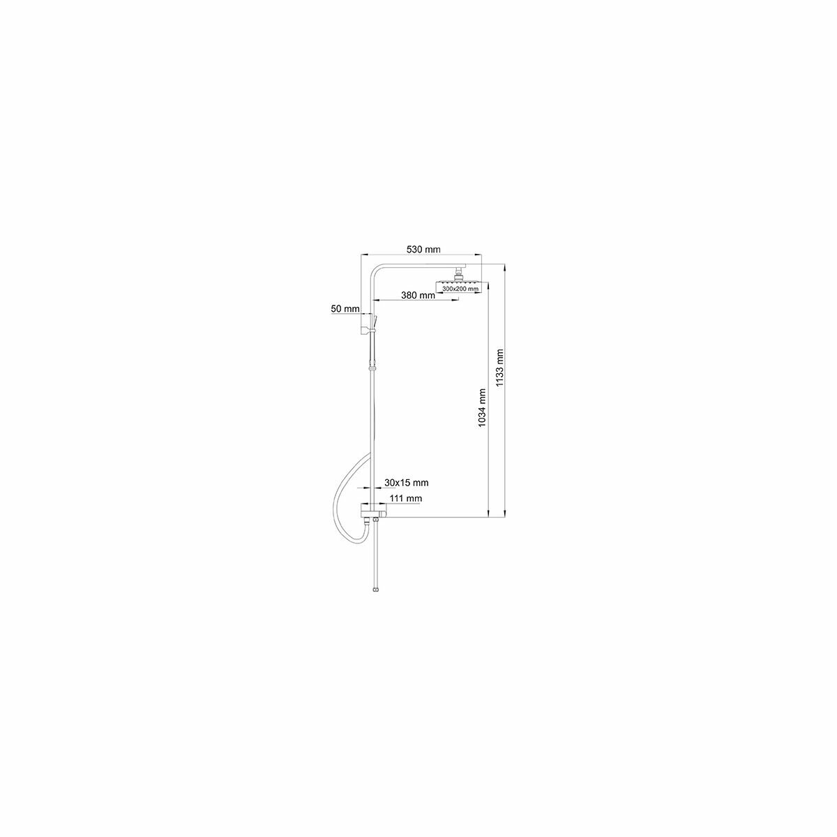 | Дополнительная информация | режимы потока воды: ливневый дождь; высота стойки для душа: 113,3 см; стойка 30 х 15 мм; смеситель в комплект не входит |
