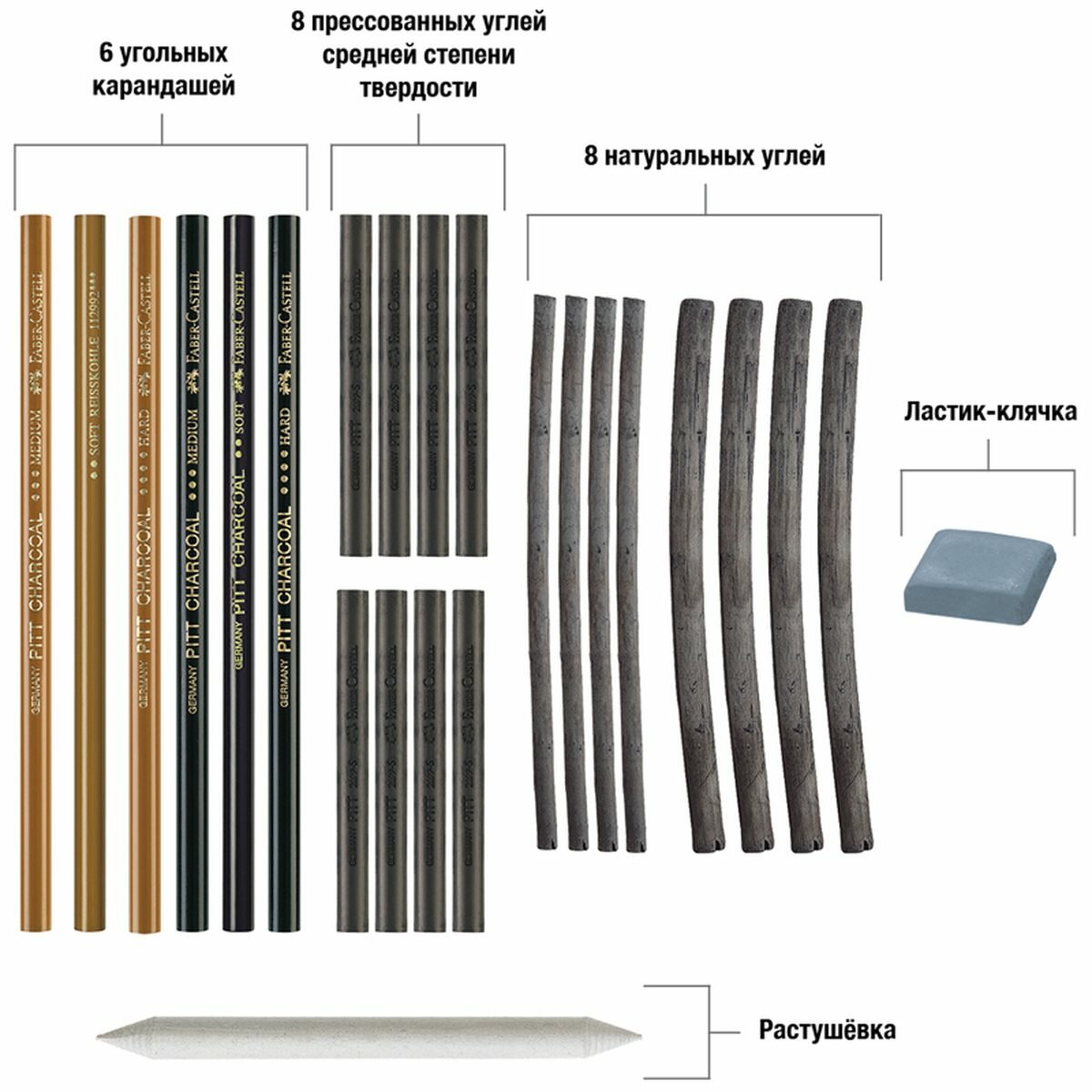 Набор угля и угольных карандашей Faber-Castell "Pitt Charcoal" 24 предмета