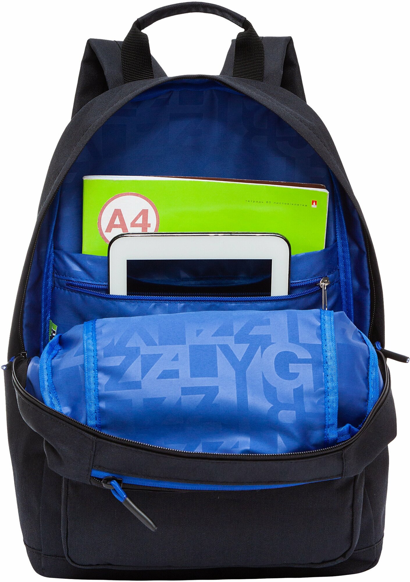 Купить Рюкзак городской молодежный Grizzly RQL-118-31 черный-синий, 1 отделение, А4, вес 520грамм, 28х41х18см
