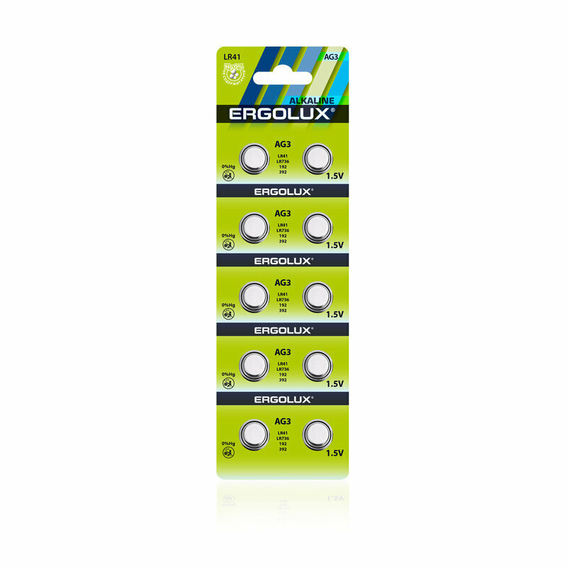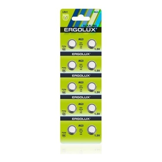 Батарейки щелочные Ergolux - тип AG3, 1.5В, 10 шт. в упаковке