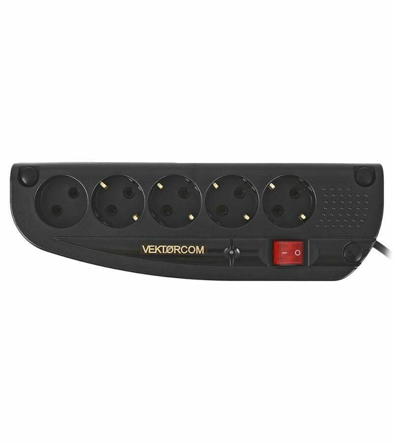 Сетевой фильтр Vektor COM, 5 розеток, черный 1.8м, компьютерный