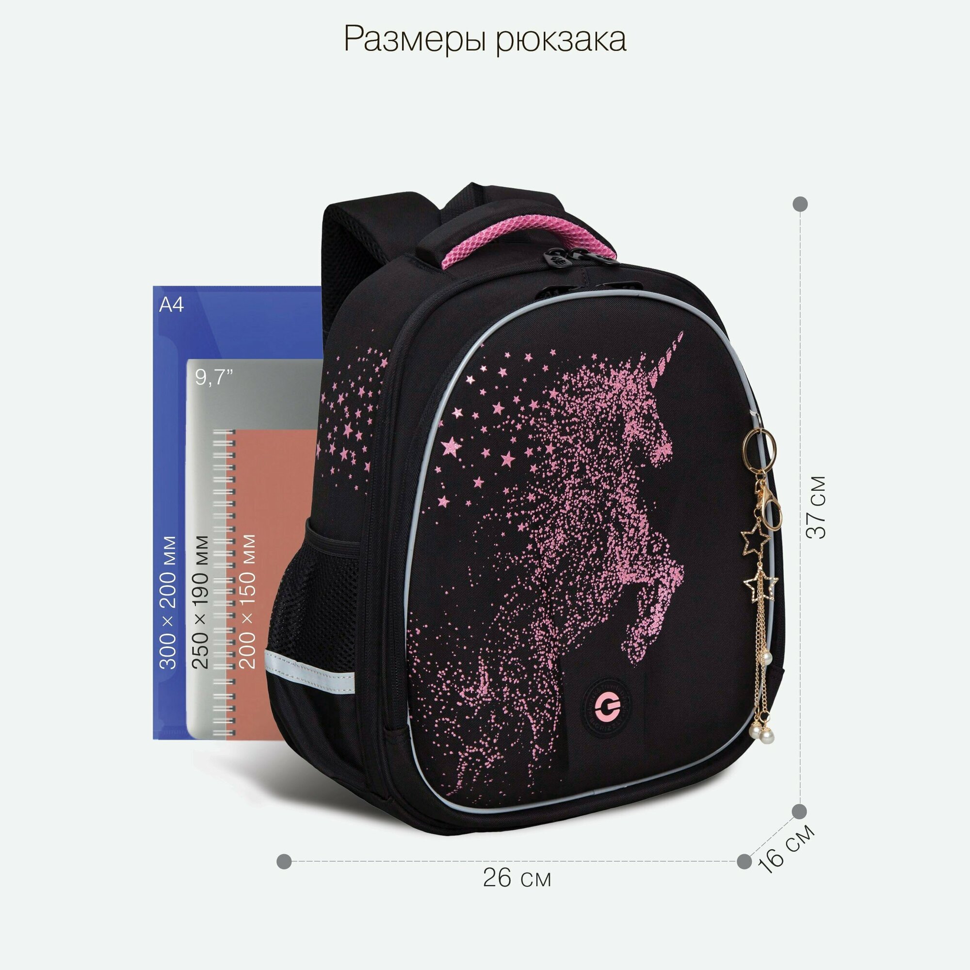 Купить Ранец школьный GRIZZLY RAz-386-7 /1 черный - розовый, 1858403
