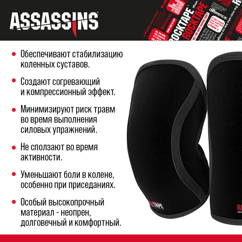 Компрессионные наколенники Rocktape Assassins, черные, толщина 7 мм, размер XL интересное: