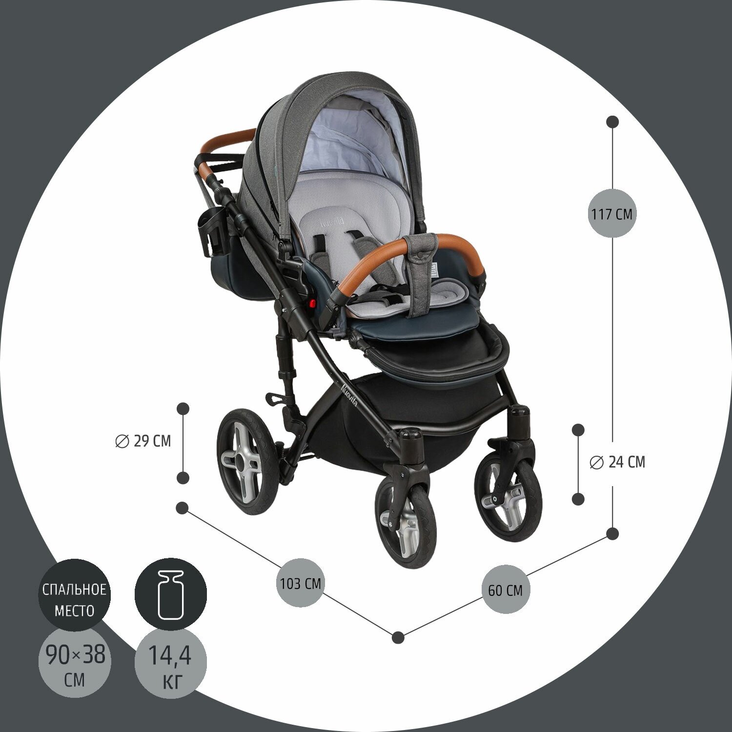 | Плюсы: | Большая и комфортная для ребенка, идет мягко даже по плохой дороге. Колеса большие так что проходимость отличная, поднимать на бровки или затянуть на ступеньки без проблем получается. Комплектация очень полная, порадовала: подстканник, дождевик, москитка, накидка на ножки и сумка для мамы. |
