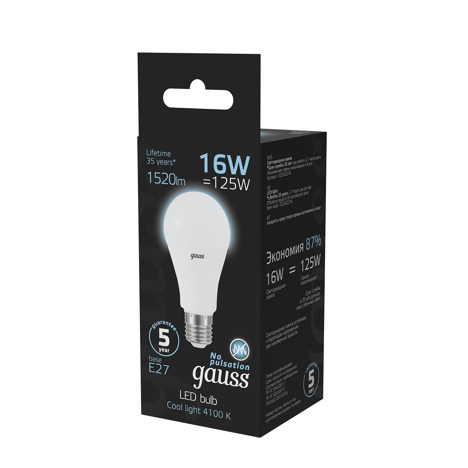 Лампа светодиодная gauss 102502216, E27, A60, 16 Вт, 4100 К