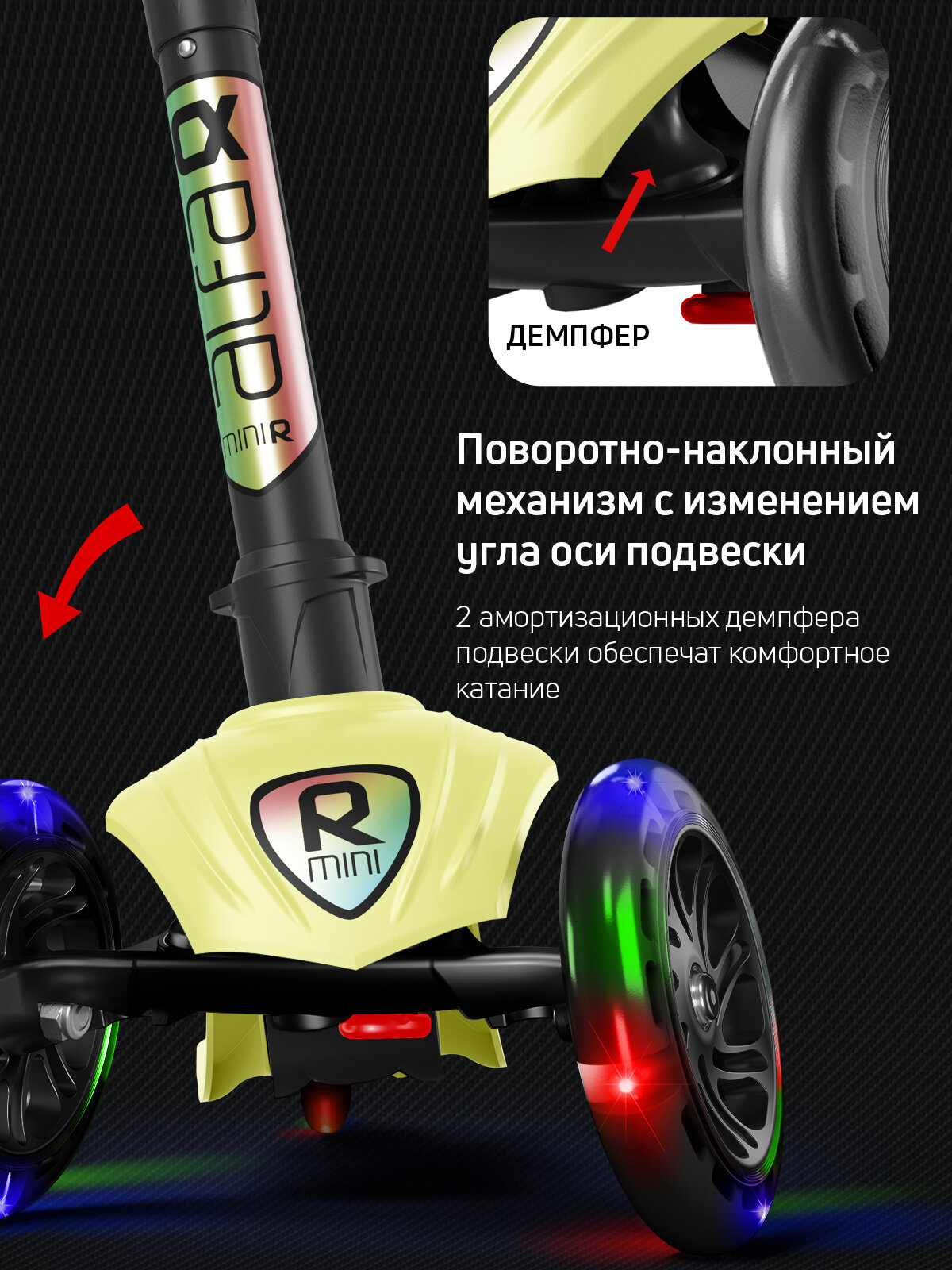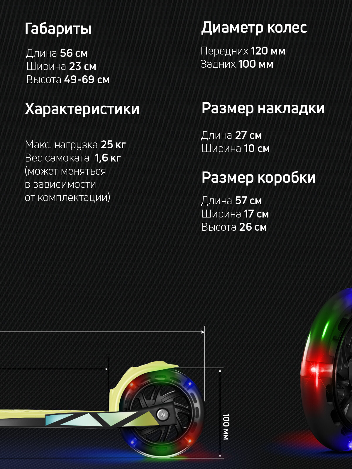 | Конструктивные особенности | крыло заднее / регулировка высоты руля / светящиеся колеса / складной |