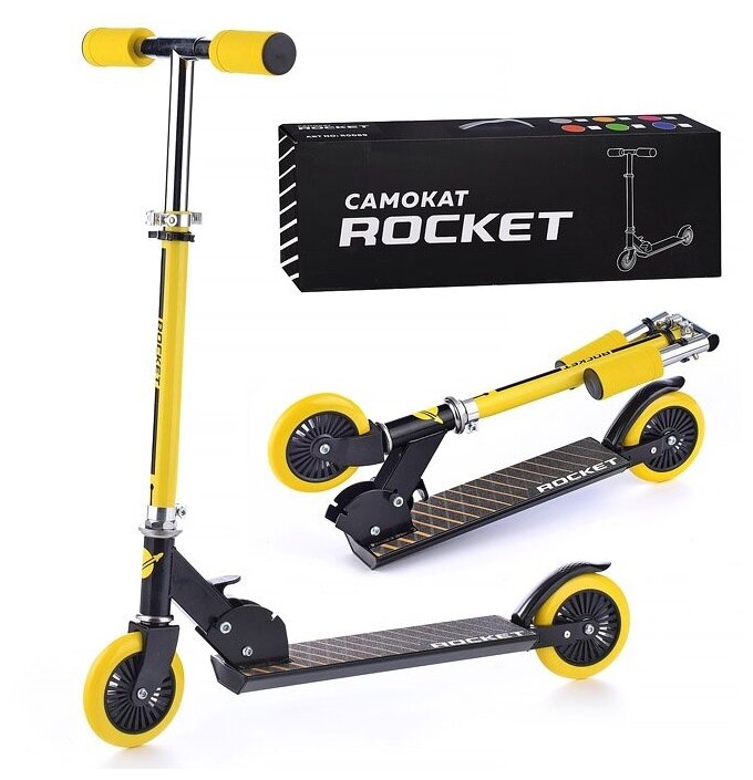 Самокат складной, двухколесный ROCKET,колеса PU/ 125 мм,ABEC 7, желтый