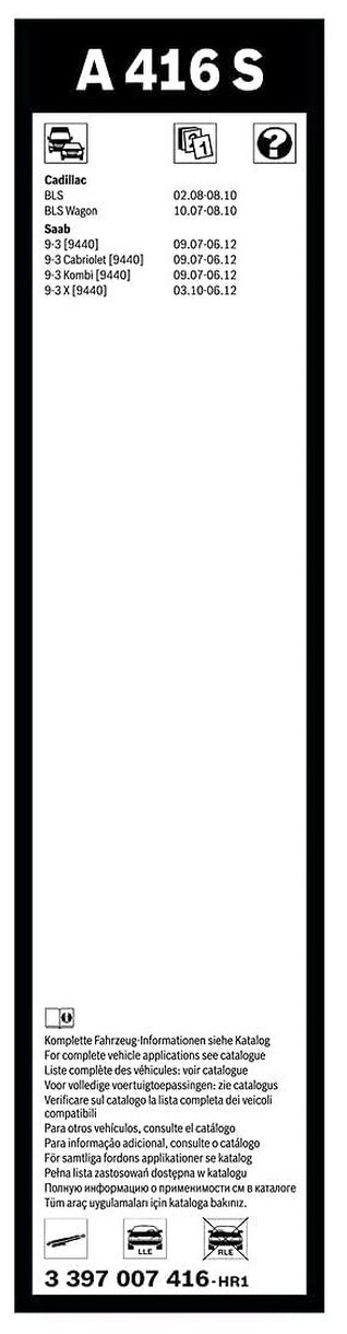 BOSCH 3 397 007 416 Стеклоочистители 600/575 SAAB 9-3 2003=> A416S, 2шт.