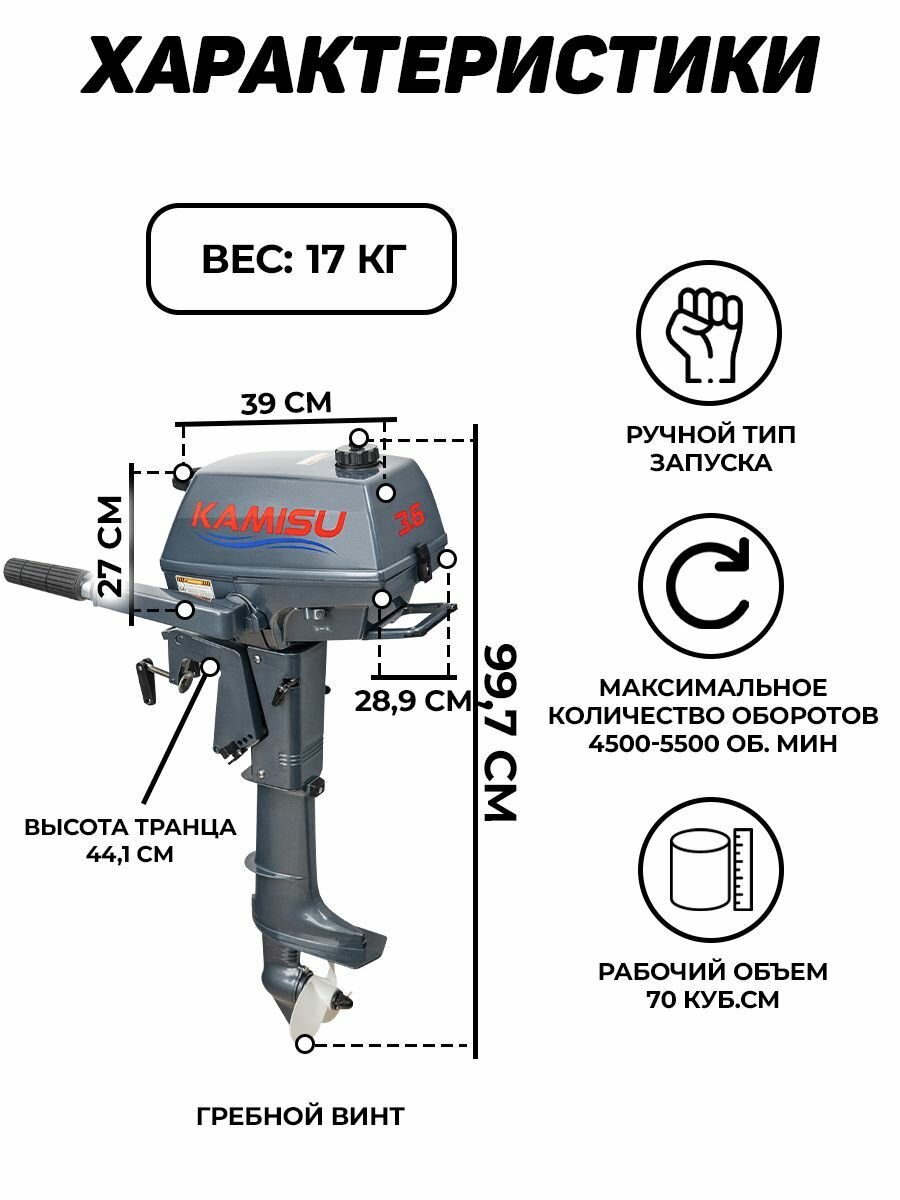 Бензиновый лодочный мотор Kamisu T 3.6 BMS 2-х тактный интересное: