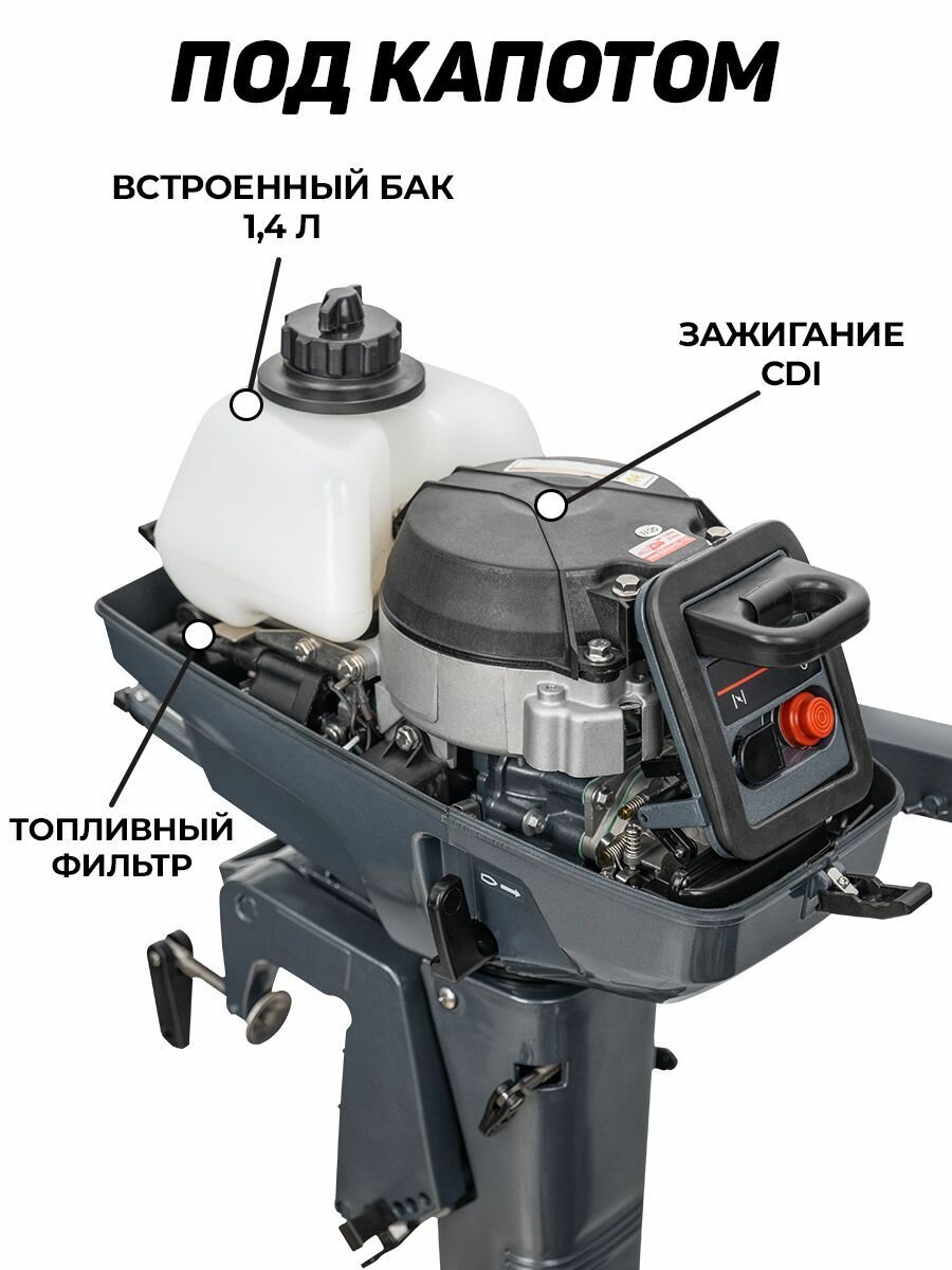 Подвесной лодочный мотор KAMISU T3.6BMS, бензиновый, двухтактный, 3.6 л.с., 2.2 кВт