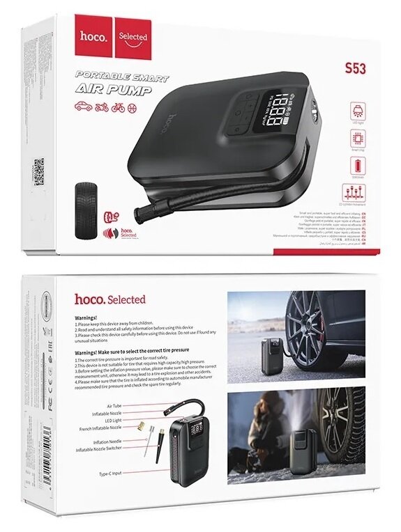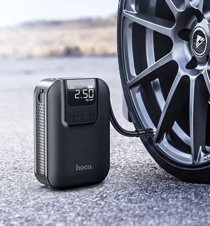 Компрессор автомобильный беспроводной смарт насос Hoco S53 5000mAh черный