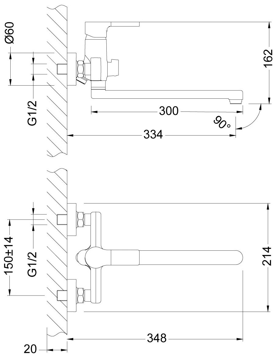 Смеситель Lemark Aura LM0651C универсальный с плоским изливом 300мм, дивертор с кер. пластинами, хр