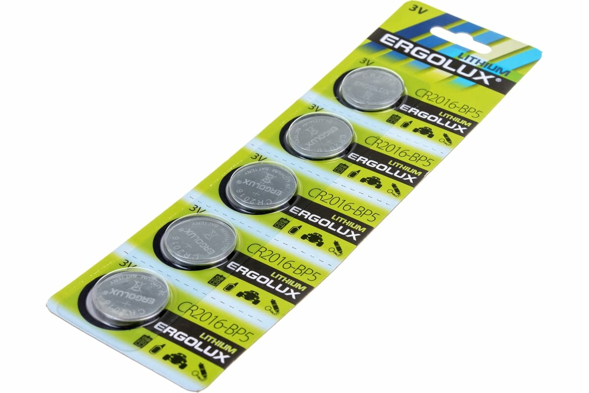 Батарейки литиевые Ergolux - тип CR2016, 3В, 5 шт. в упаковке