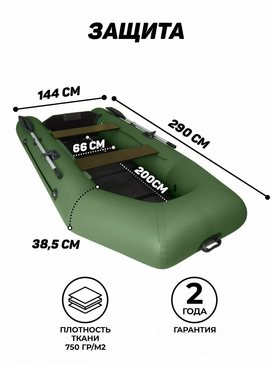 Лодка пвх под мотор Барс 2900 СКК, двухместная, сварные швы, слань в комплекте, зеленый