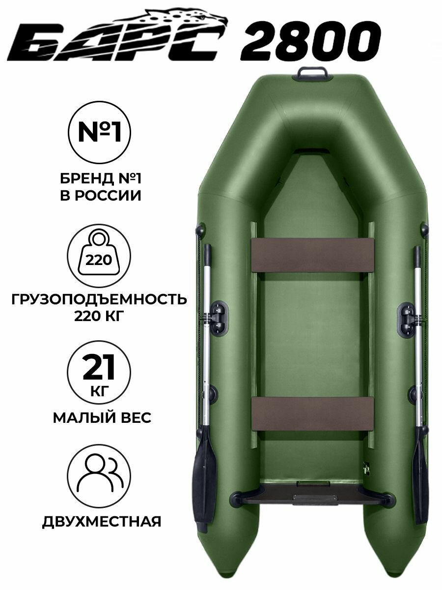 Лодка пвх под мотор Барс-2800, двухместная, зелёная интересное:
